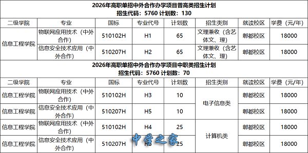 2026年高职单招中外合作办学项目招生计划