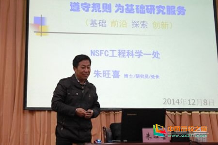 12月8日下午,国家自然科学基金委员会工程与材料科学部工程一处处长朱旺喜在兰州理工大学作了题为“遵守规则 为基础研究服务”的专题报告。兰州理工大学党委书记李贵富出席报告会,并就兰州理工大学国家自然基金的申报工作与朱处长进行了交流。报告会由副校长芮执元主持,各学院研究人员听取了报告。