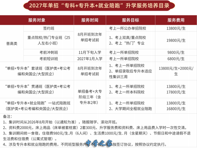 2027届开设班型及收费标准